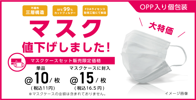 マスク単体@13→@10 マスクケースに封入 @18→@15