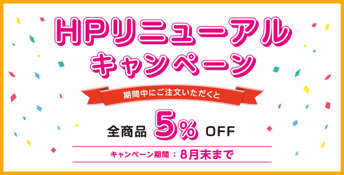 この度HPリニューアルを記念し、8月末まで全商品5%OFFのキャンペーンを開催いたします!