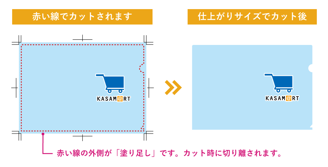印刷時に、印刷用紙が熱や湿度によってわずかに伸び縮みをするため、塗り足しが必要となります。