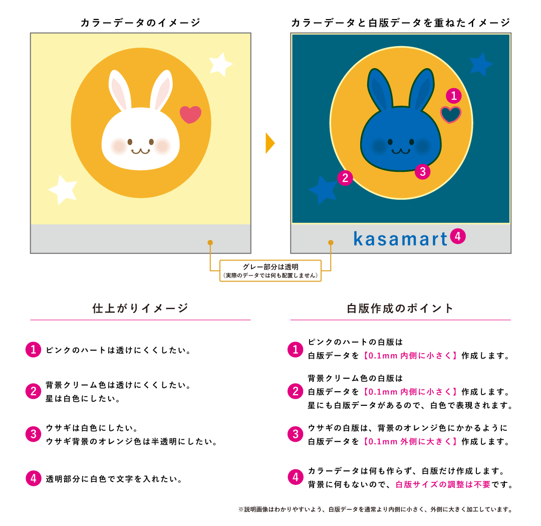 カラーデータから白版データがはみ出してしまう可能性があります。