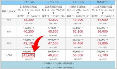 特別仕様や掲載商品に該当枚数がない場合は、見積依頼フォームよりお問い合わせください。