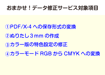 対象内のデータ不備があった場合、当社で手直しすることによって、お客様に再入稿頂くことなくスムーズに印刷へ進めます!